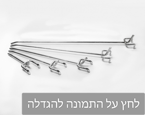 ווים למזונית מחוררת. גדלים 5, 10, 15, 20, 25 ס"מ מס' קטלוגי 184 אורך צבע רשום את הצבע ומספרו הקטלוגי באתר סוג חומר רשום את המספר הקטלוגי של החומר באתר כמות קוטר