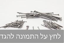 מסמרים רגילים בגדלים שונים. בין 2 ס"מ עד 12 ס"מ מס' קטלוגי 110 אורך צבע רשום את הצבע ומספרו הקטלוגי באתר סוג חומר רשום את המספר הקטלוגי של החומר באתר כמות קוטר